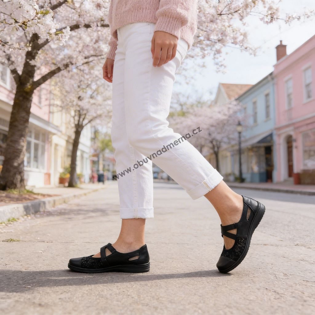 Kvalitní kožený svršek spolu s příjemnou koženou podšívkou zajišťují pohodlí a dobrou prodyšnost. Pásek přes nárt na suchý zip umožňuje snadné přizpůsobení balerín individuálnímu tvaru nohy, takže bota pevně drží a přitom neomezuje pohyb. Vyjímatelná ortopedická vložka navíc umožňuje vložení vlastní ortopedické stélky, pokud ji potřebujete.