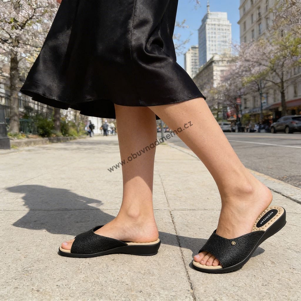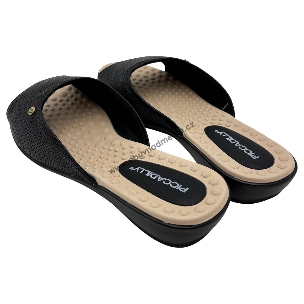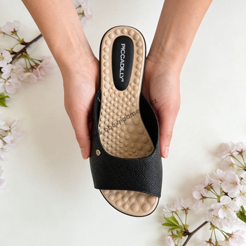 Univerzální a elegantní pantofle Piccadilly Camila jsou ideální pro ženy, které hledají lehkou, pohodlnou a zároveň elegantní obuv na každý den. Díky střihu WIDE FIT poskytují dostatek prostoru širšímu chodidlu a jsou vhodné také při citlivosti v oblasti kloubu palce - na halluxy.