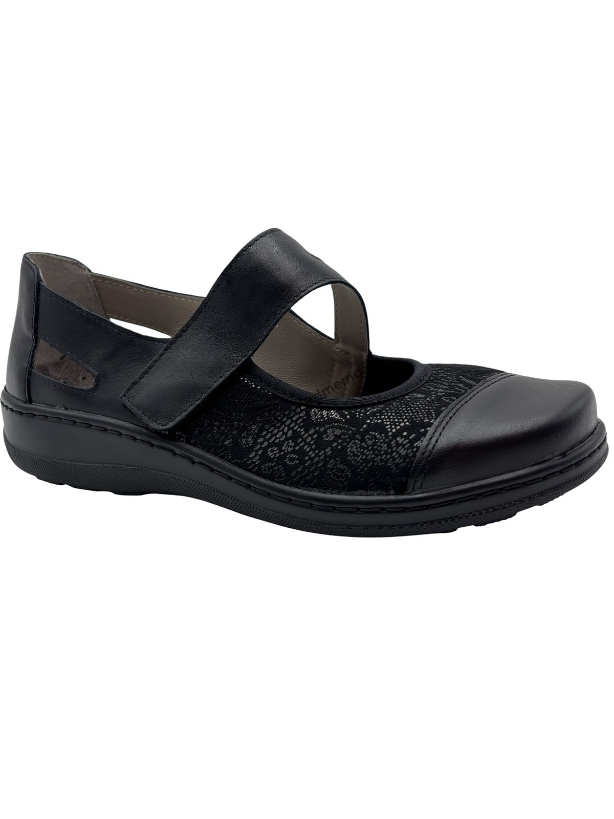 Baleríny černé Mediline Silvia s páskem elastické na široké chodidlo