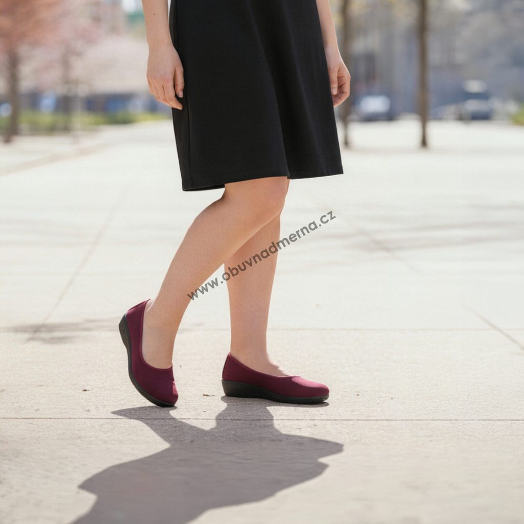 Otevřenější, mimořádně prostorný střih dává chodidlu maximální volnost. Měkký pružný materiál se přizpůsobí i výrazným tvarovým změnám chodidla. Velmi široce řešená pata zajišťuje pohodlí i ženám, kterým běžné baleríny v zadní části vůbec nesedí.