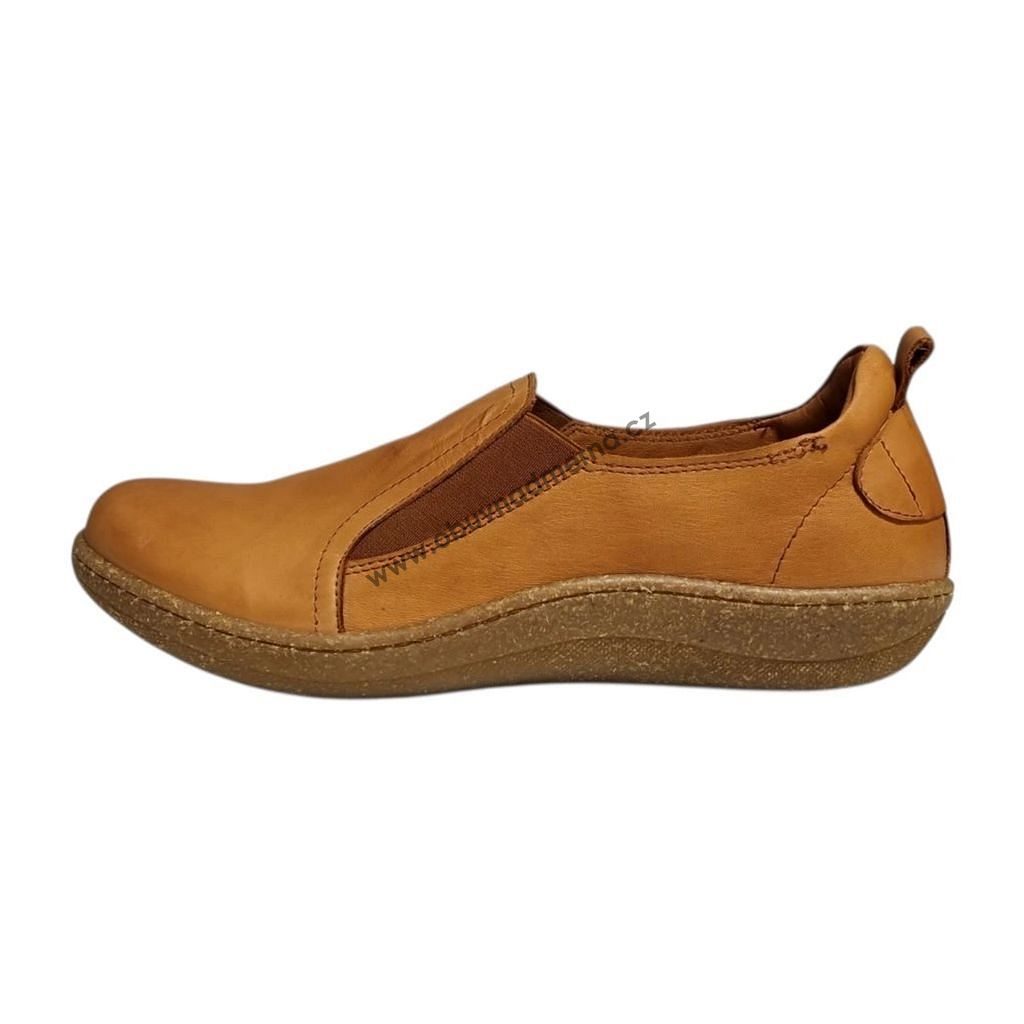 Model je řešen jako mokasína bez šněrování, se dvěma elastickými vsadkami po stranách, které usnadňují obouvání a zároveň se přizpůsobí tvaru nártu. Boty tak snadno nazujete a elastické části zajistí pohodlné usazení na noze po celý den.