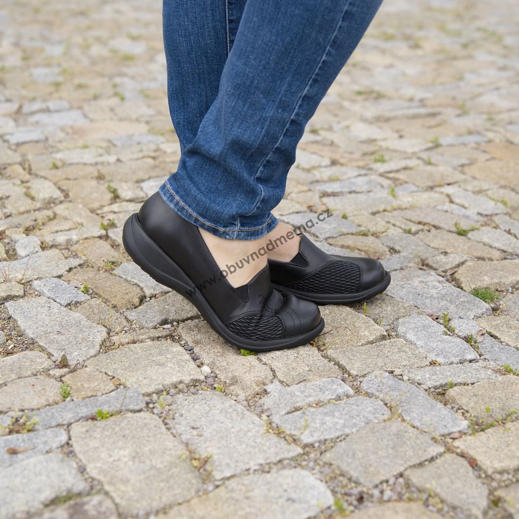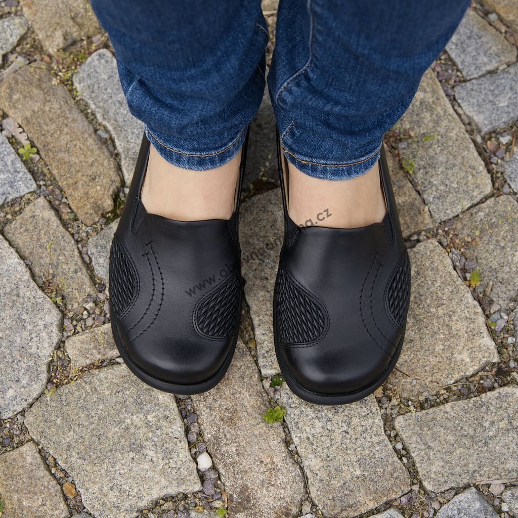 Dámské polobotky Axel, široká špička, na hallux, na široké chodidlo, šíře H, kožené, nízký klínek, vyjímatelná vložka, ortopedické srdíčko.