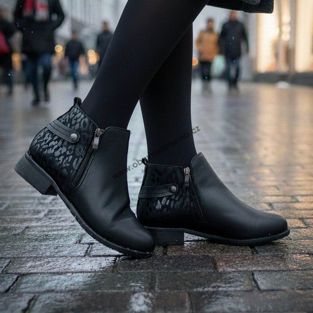Dámské zimní kotníkové boty De Plus, na široké chodidlo, zateplené, extra šíře K, kožené, zip na vnitřní i vnější straně, nízký podpatek.