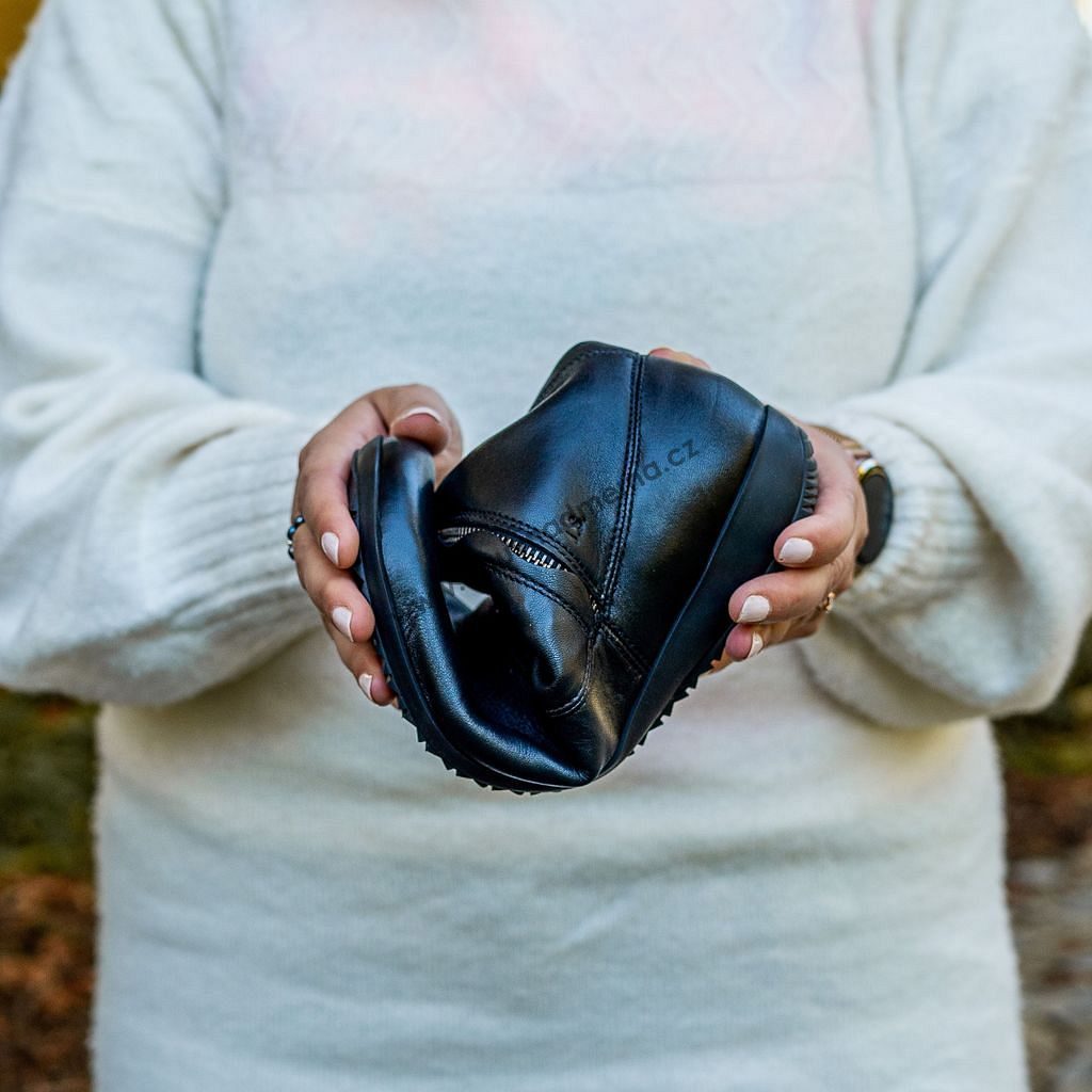 Boty jsou vyrobeny z kvalitní přírodní kůže, která je příjemná na dotek a přizpůsobí se tvaru Vašeho chodidla. Podšívka zateplená mikroplyšem udrží Vaše nohy v teple i během chladnějších dnů. Zateplená je i tlumící vyjímatelná vložka. Díky střednímu dezénu podrážky, která je lehká a neklouzavá, jsou boty vhodné jak na běžné nošení do práce nebo na pochůzky po městě, tak i na nenáročné procházky ve volném čase. Zipy na vnitřní i vnější straně Vám umožní snadné obouvání.