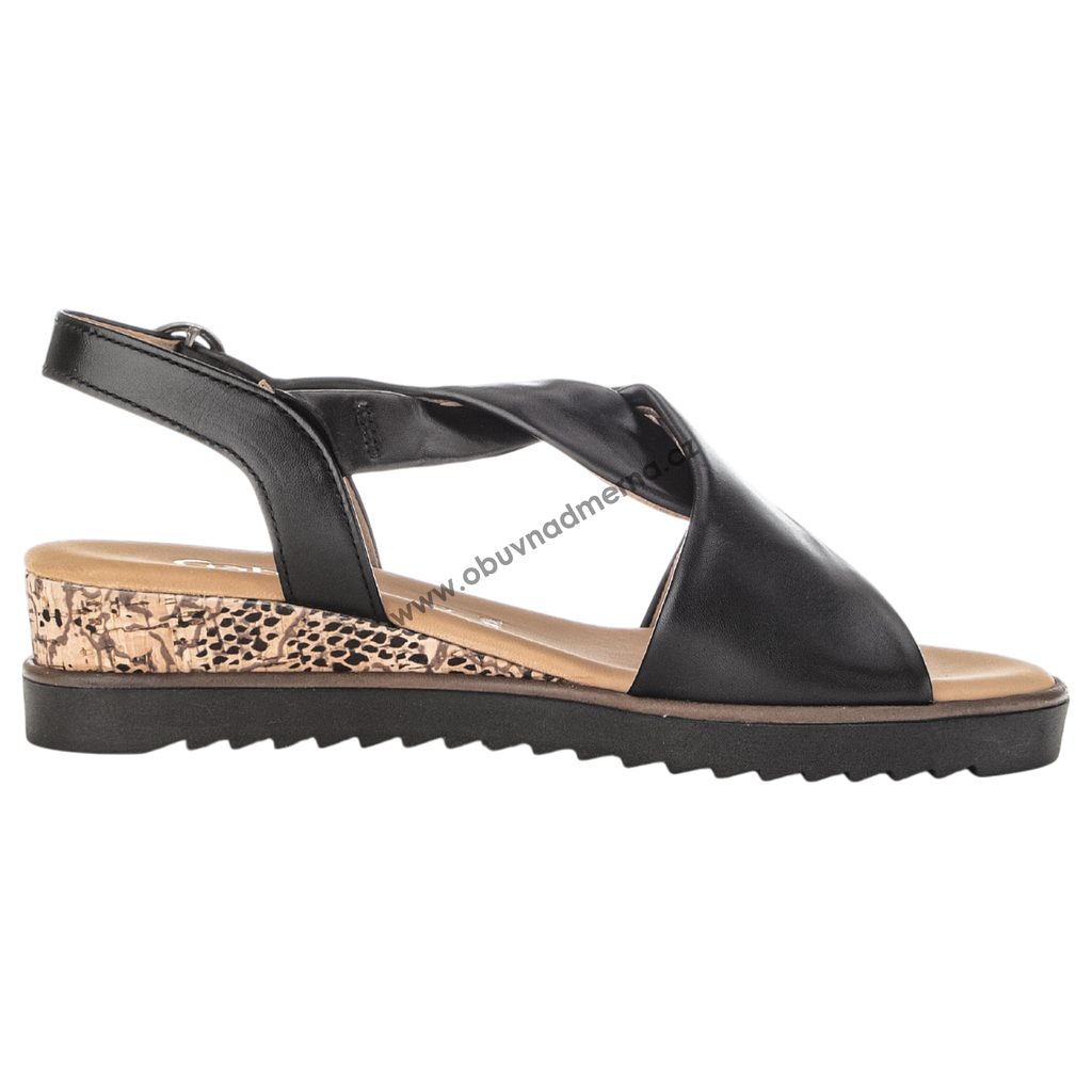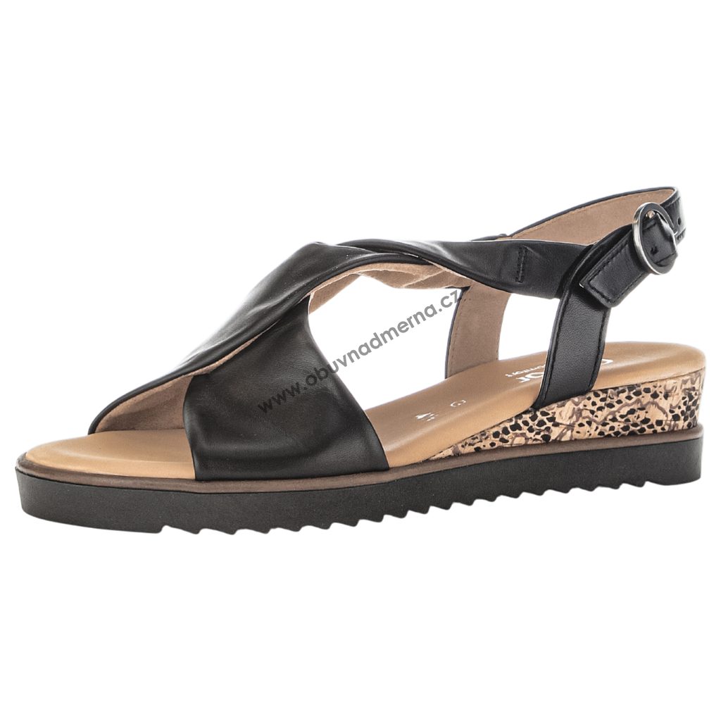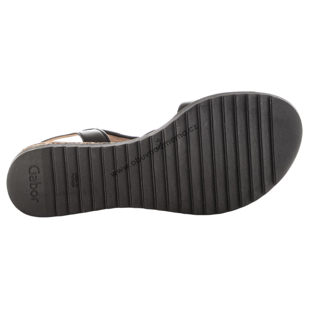 Dámské sandály Gabor na klínu z hladké černé kůže spojují eleganci s pohodlím. Díky přizpůsobivým páskům, měkké stélce, klínku z udržitelného korku a šíři G se chodidlo cítí komfortně po celý den.