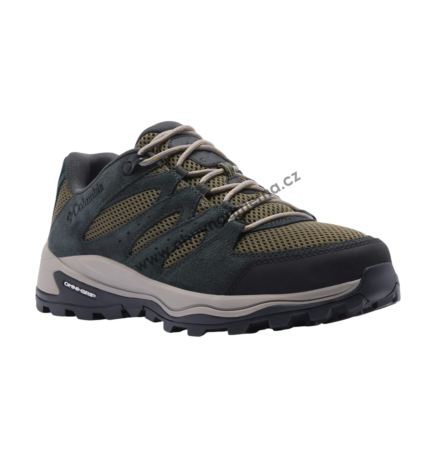 Svršek kombinuje odolnou síťovinu s koženými prvky a gumovou ochranou špičky, což zajišťuje optimální prodyšnost, stabilitu a odolnost proti oděru. Kovové horní háčky poskytují pevné a bezpečné utažení tkaniček. Díky konstrukci Omni-TECH™ Waterproof Bootie jsou boty plně nepromokavé, přesto prodyšné.