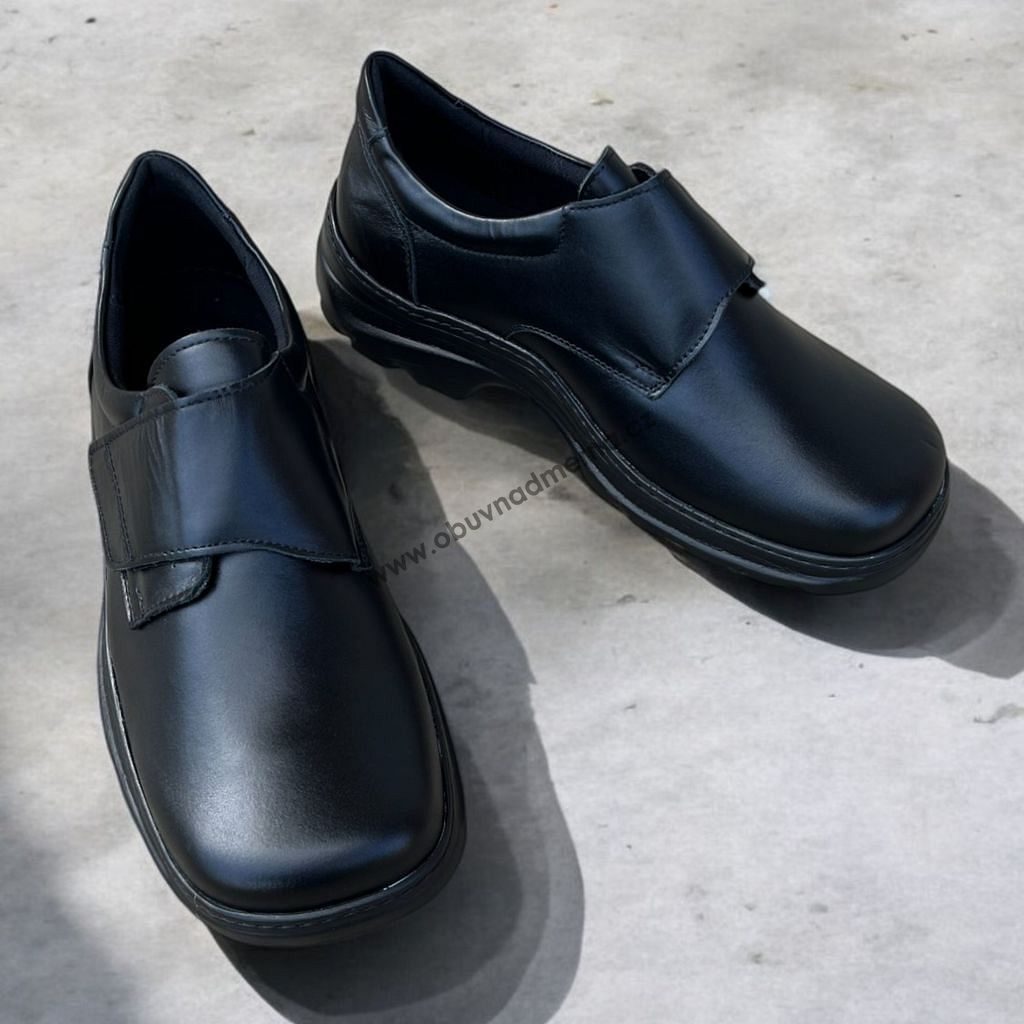 Extra široké pánské polobotky s velmi prostornou špičkou jsou ideální volba, pokud máte široké chodidlo, vysoký nárt či trpíte deformitami chodidel - např. vbořené palce (hallux valgus). Široká anatomicky tvarovaná špička poskytuje dostatek místa pro prsty. Otlačeným malíčkům a utlačovaným palcům tak můžete dát sbohem. Do této boty se pohodlně vejdete. Suchý zip spolu s širokým prostorným střihem umožňuje botu přizpůsobit i vysokému nártu.