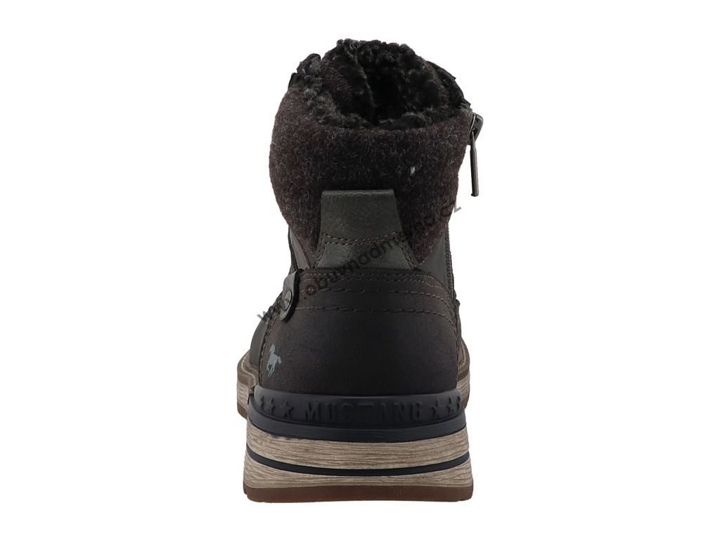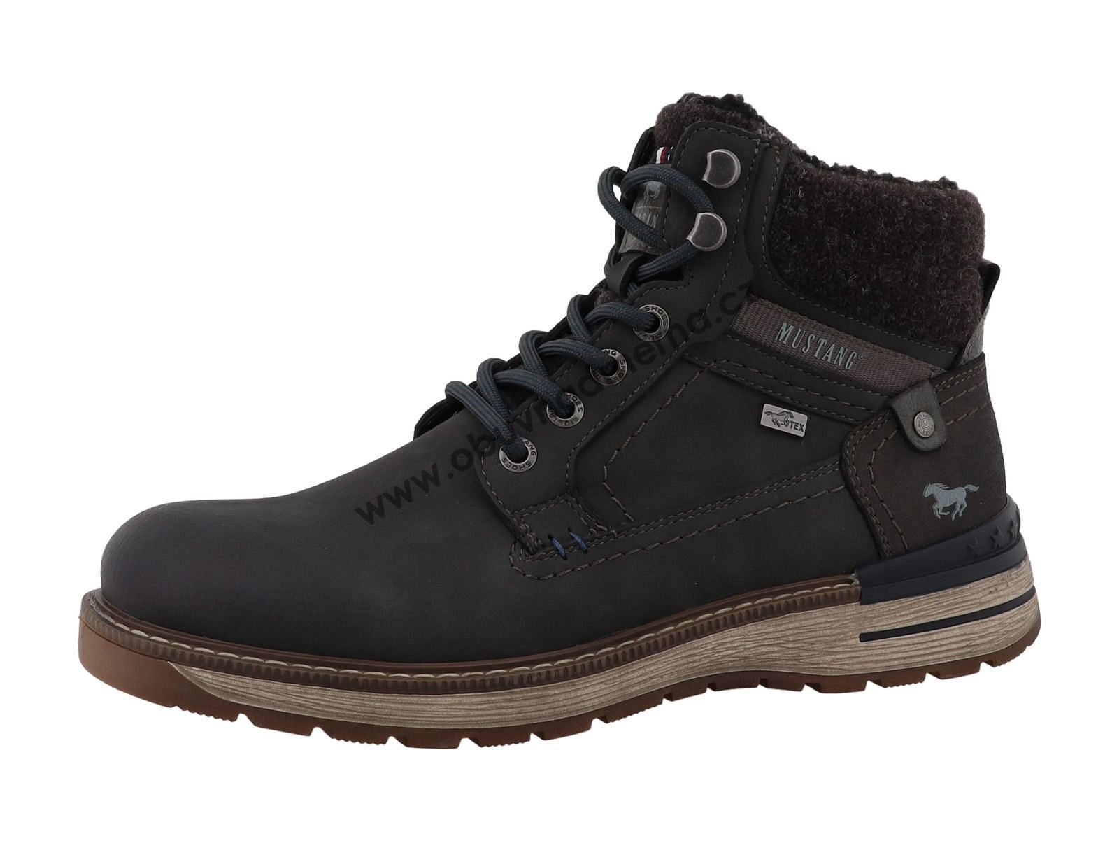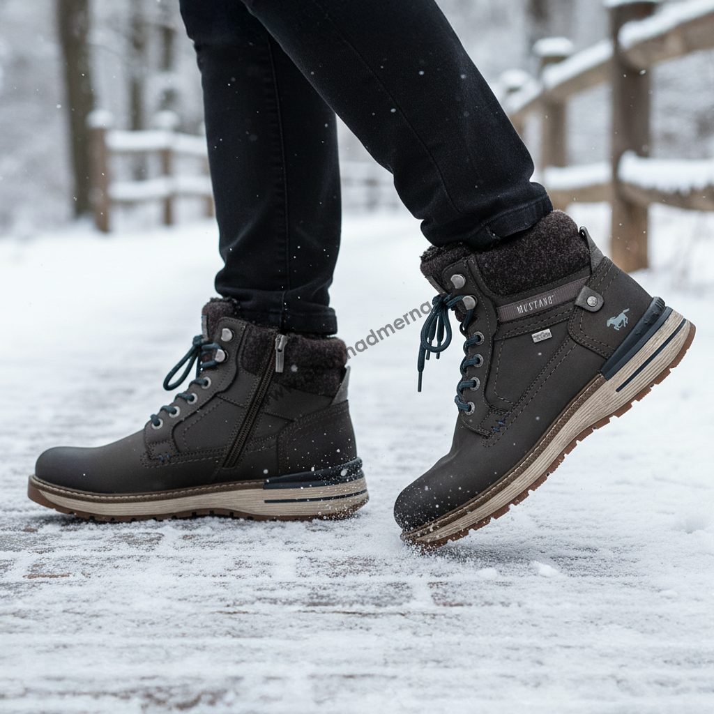 Boty mají praktické šněrování pro individuální přizpůsobení a boční zip, který usnadňuje obouvání. Typický stylový vzhled Mustang doplňuje robustní podešev s jistým krokem na mokrém či zasněženém povrchu.