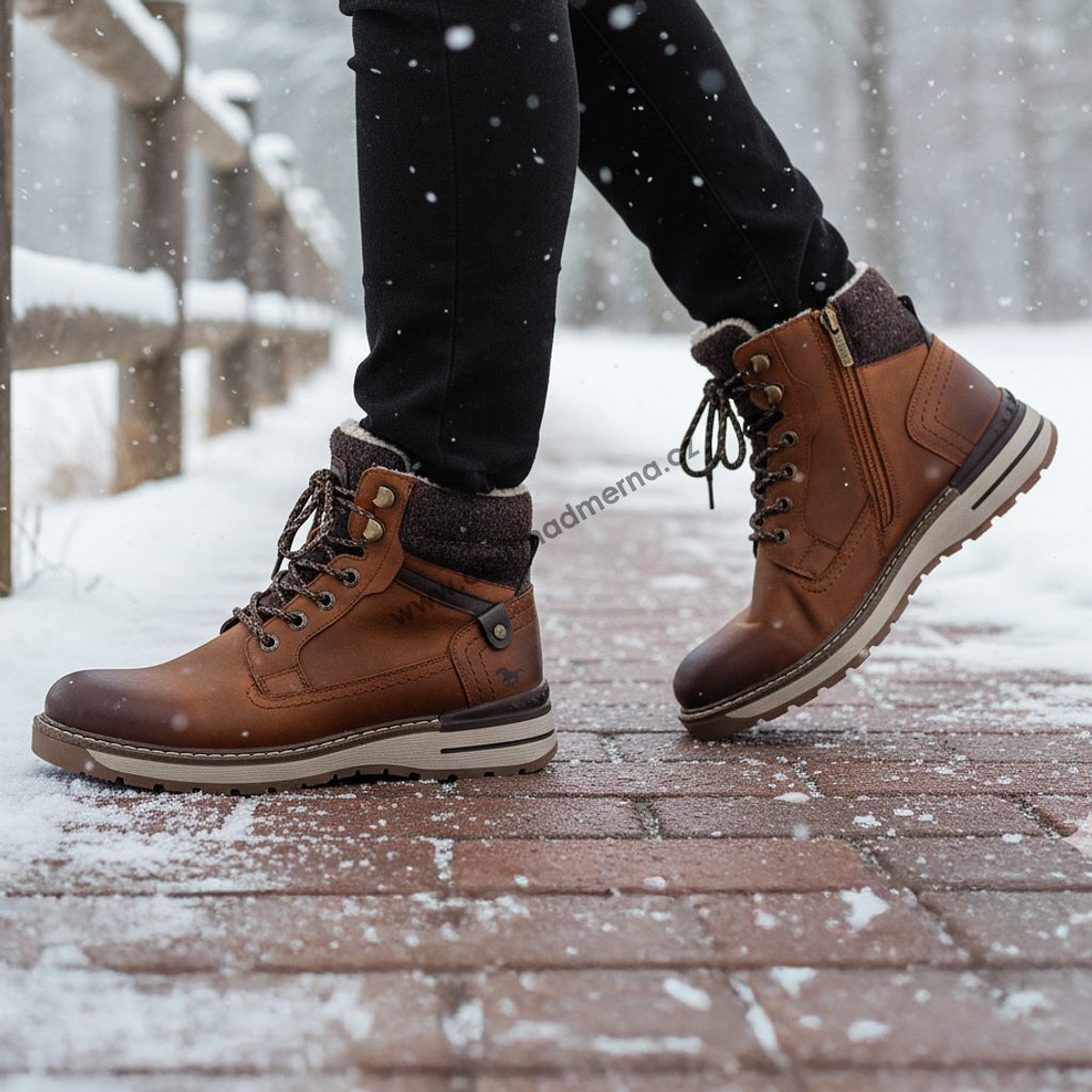 Boty mají praktické šněrování pro individuální přizpůsobení a boční zip, který usnadňuje obouvání. Typický stylový vzhled Mustang doplňuje robustní podešev s jistým krokem na mokrém či zasněženém povrchu.